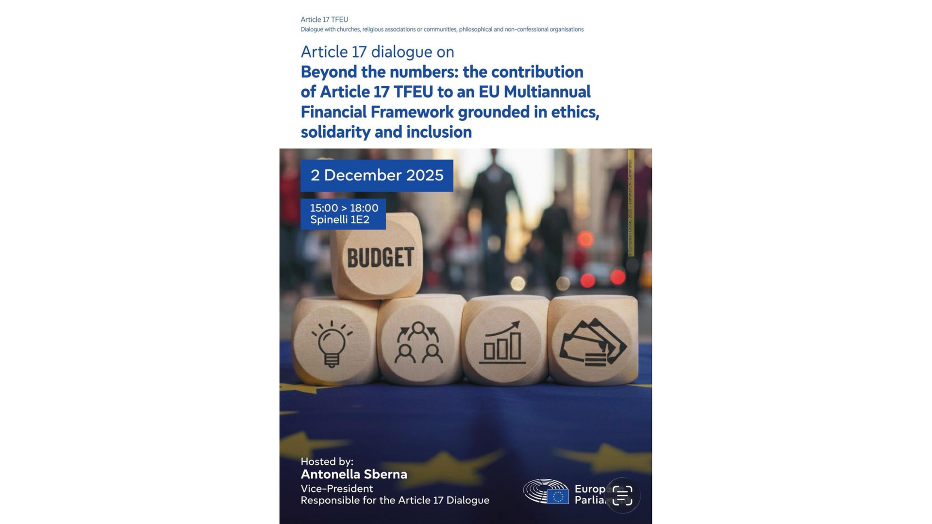 On 2 December, the European Parliament hosted the seminar “Beyond the numbers: the contribution of Article 17 TFEU to an EU Multiannual Financial Framework grounded in ethics, solidarity and inclusion”. The event explored how the EU’s multiannual budget can be inspired by ethical and inclusive principles, going beyond mere financial dimensions. The role of religious and philosophical organisations in defining fairer and more sustainable policies was discussed, as well as how the EU budget can promote a fairer and more competitive European social model.