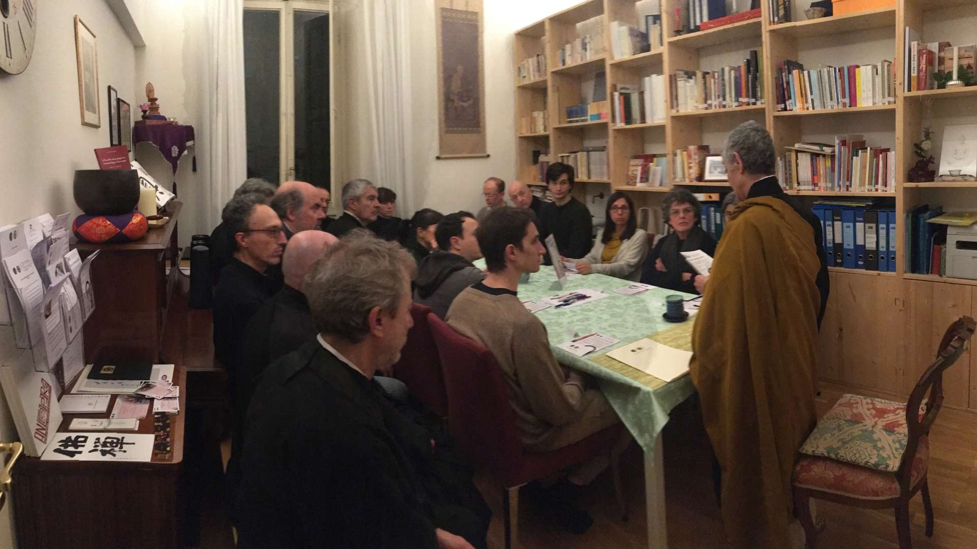At Shinnyoji we practice Sōtō Zen sitting meditation (zazen) and walking meditation (kin-hin) as well as Sūtra chanting. We hold retreats several times a year where we take our meals formally (ōryoki) and practise samu (work). Throughout the year we conduct traditional Sōtō Zen Ceremonies such as Ordination Ceremonies and the Sankie butsu, the three most salient events in the Buddha's life: birth, Gōtan-e; enlightenment, Jōdō-e; and entry into the Parinirvāṇa, Nehan-e. We also offer beginners’ Zen courses and calligraphy courses. We have a library of books on Buddhism in various languages as well as a garden and a Tea House which is open to everyone. Our trimestral Sangha magazine, EkiZen, has been running since 2009 and is published in both Italian and English.